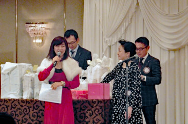 Bluetoothスピーカーや加湿器、マッサージャー等気の利いた景品の抽選会では最後に残った景品が副会長に。中身はバースデイケーキ。