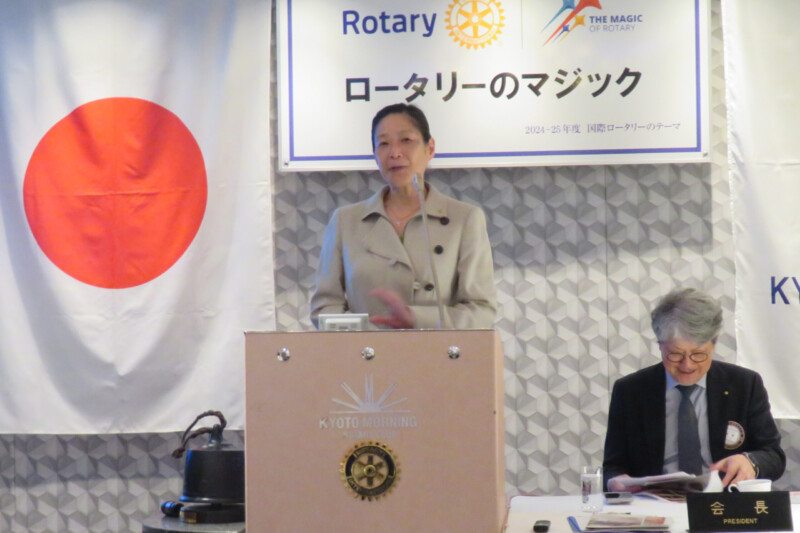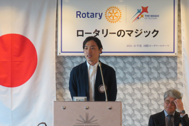「青少年交換留学生」についてお話し頂きました。15~18歳の子供達を全世界のロータリーで一年間交換しあっている制度で、通常の語学留学とは違い、それぞれの国の文化や習慣を勉強し、また自身の国の文化や習慣を伝える義務がある事から親善大使のような役割を担っており、それにより世界平和を目指す制度である旨をお話し頂きました。