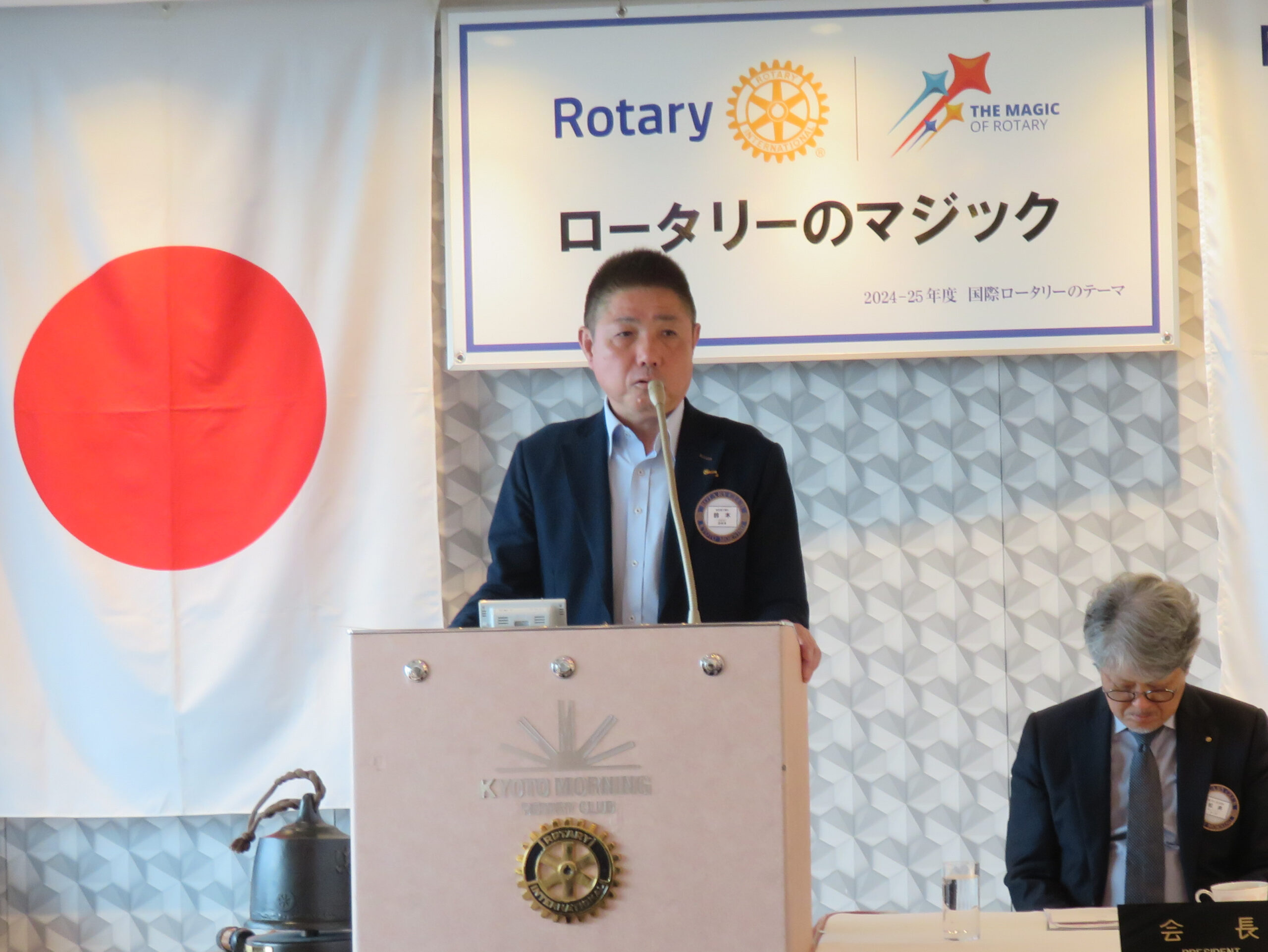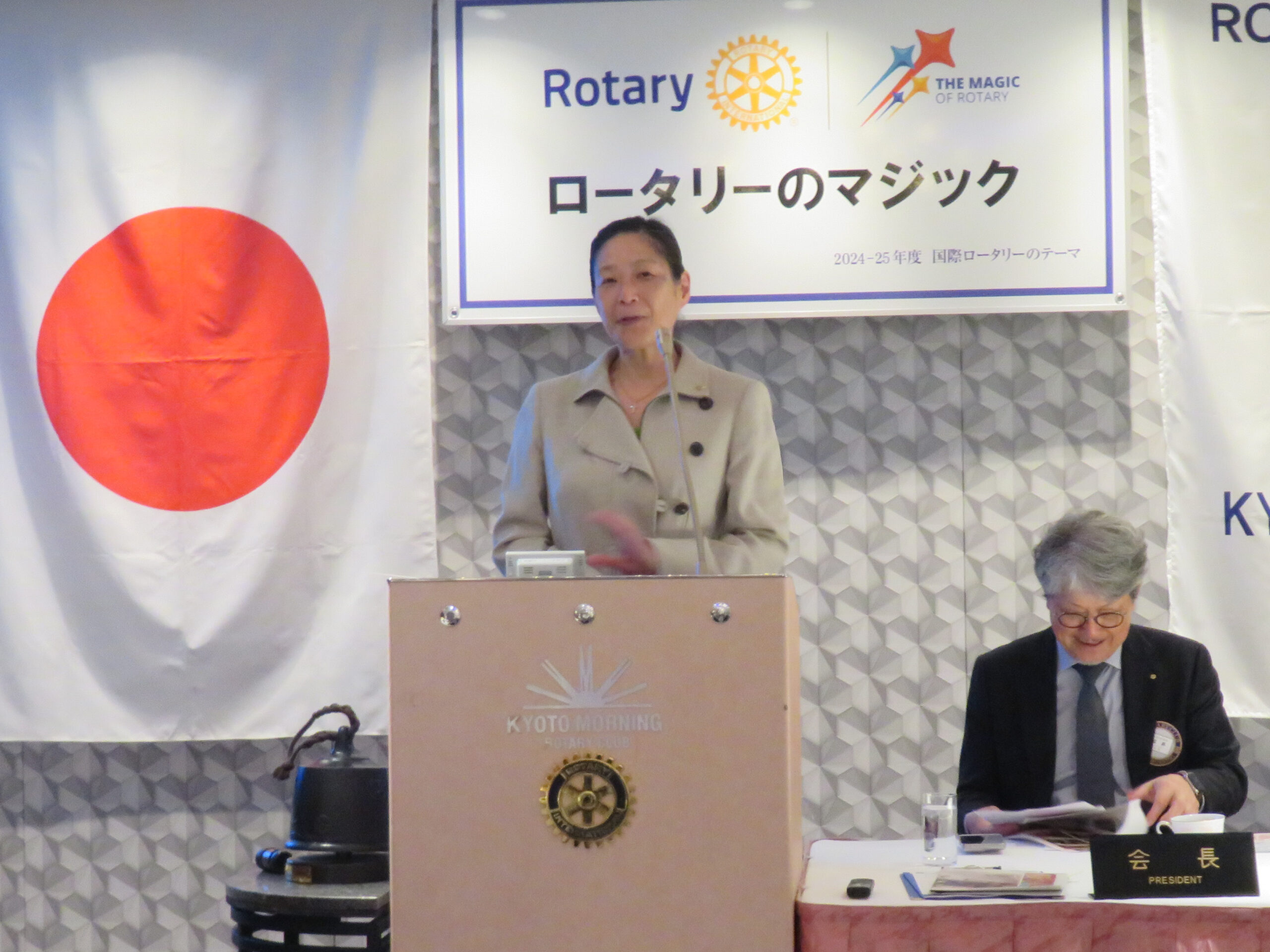 「青少年交換留学生」についてお話し頂きました。15~18歳の子供達を全世界のロータリーで一年間交換しあっている制度で、通常の語学留学とは違い、それぞれの国の文化や習慣を勉強し、また自身の国の文化や習慣を伝える義務がある事から親善大使のような役割を担っており、それにより世界平和を目指す制度である旨をお話し頂きました。